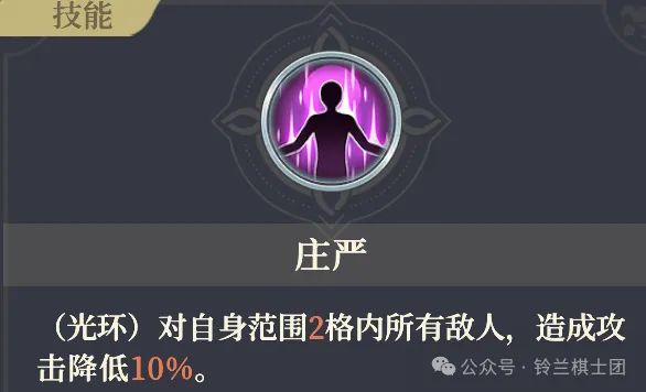 一阶左庄严,一般也不会点这个,虽然描述是造成攻击降低10%,但实际还是降攻击10%,不与其他降攻击光环效果叠加。