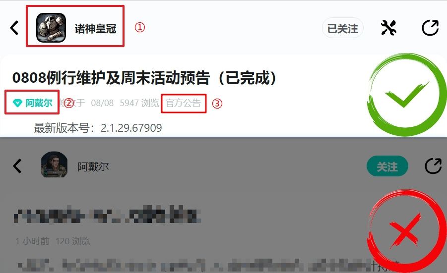 2、官方发帖,有【诸神皇冠官方】抬头✔