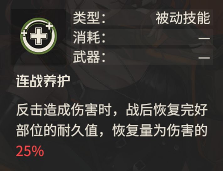 连战养护:以反击为输出手段必然是会承受更多的伤害,反击后恢复一定耐久值,可以保持卡夏的·续航能力