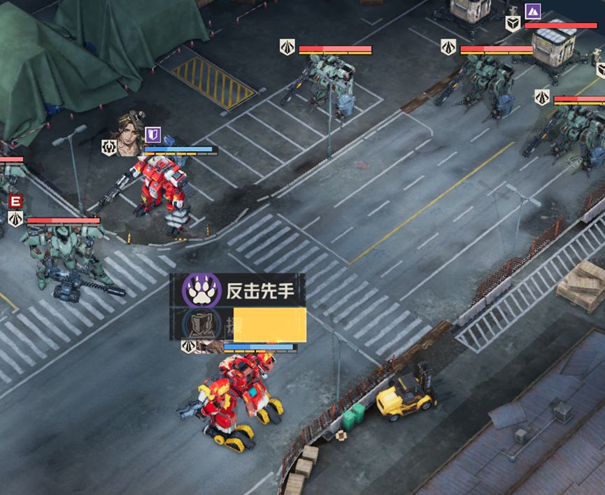 值得注意的是,经过笔者测试,强化反击和双枪反击二者并不是绑定的,即使是没有装配两把机枪,也能够发动强化反击,如下图中卡夏一手机枪一手盾牌,依旧能够触发强化反击