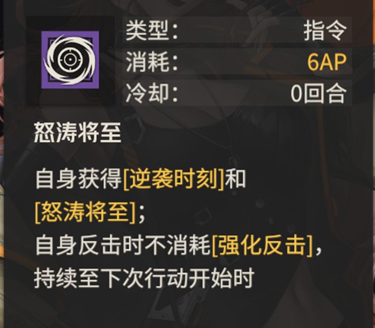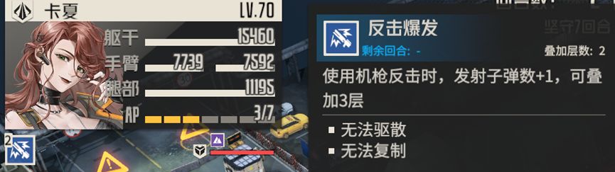 天火1:行动结束时,依照周围敌人数量获取最多2层强化反击,是卡夏获取强化反击的稳定来源