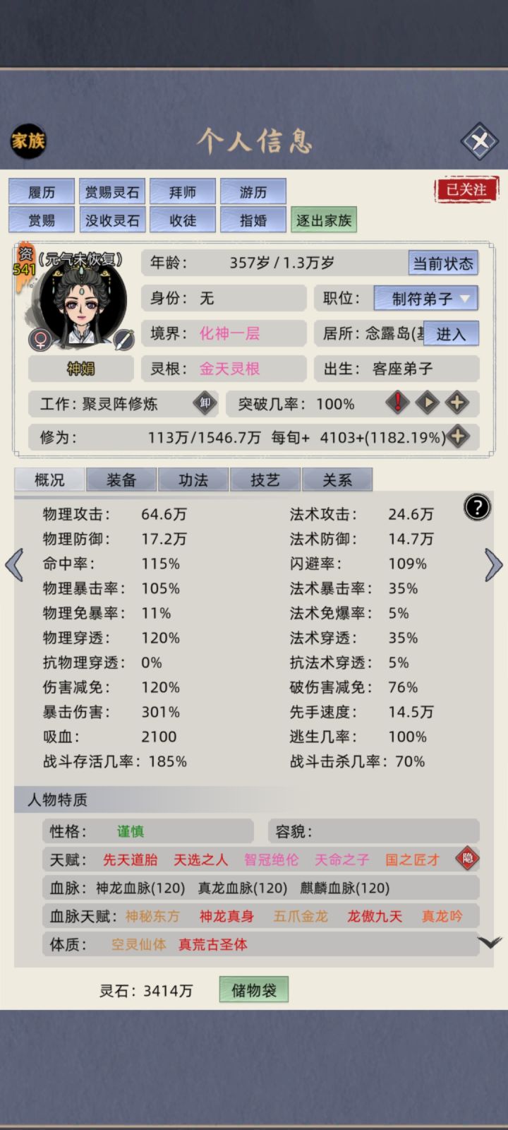 背景:家族模式开局30点天赋+3次广告90点+五灵根猥琐鲁莽老祖35点(共155点)