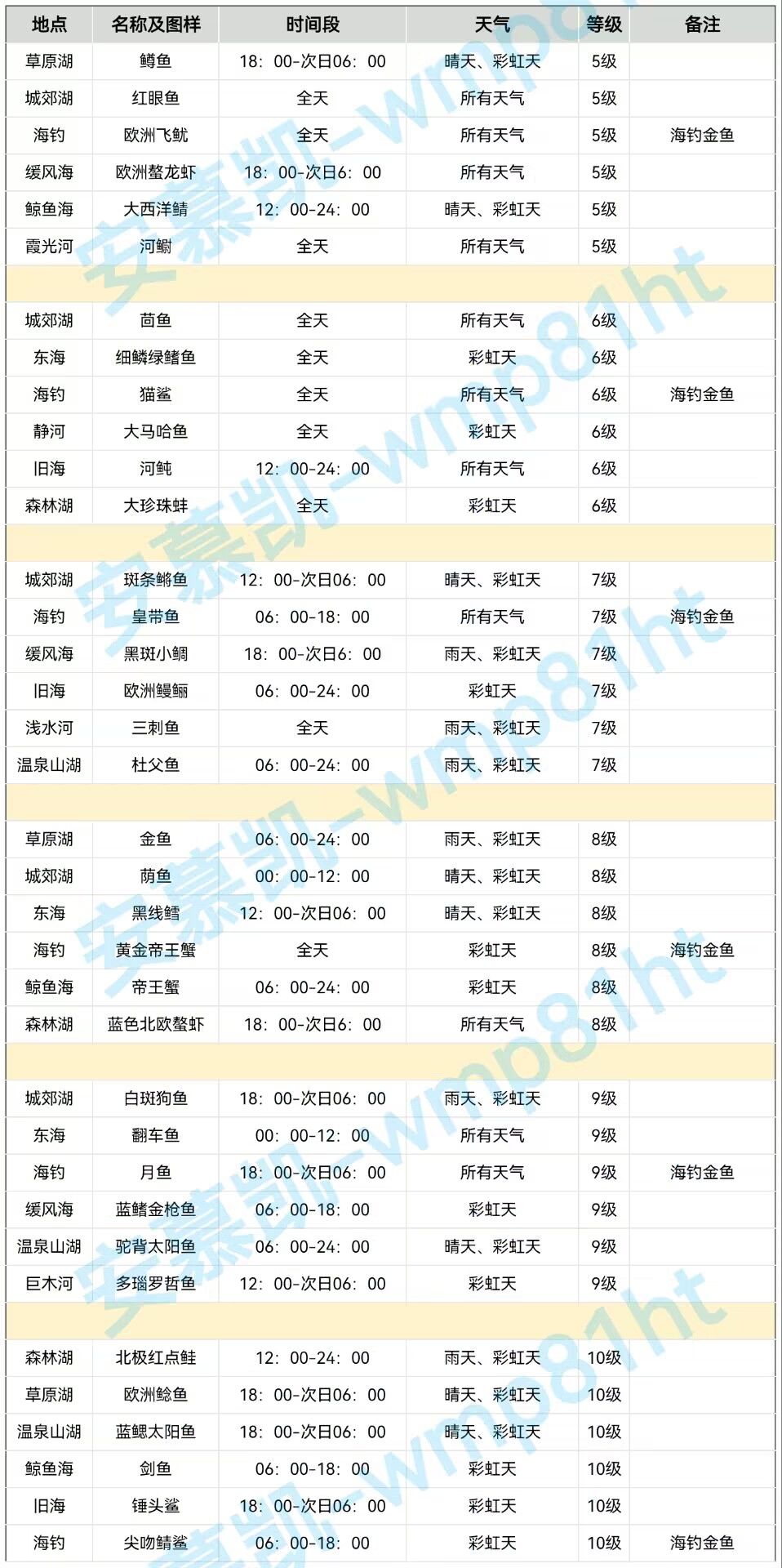 加个1-10级鱼分类区域时间。。