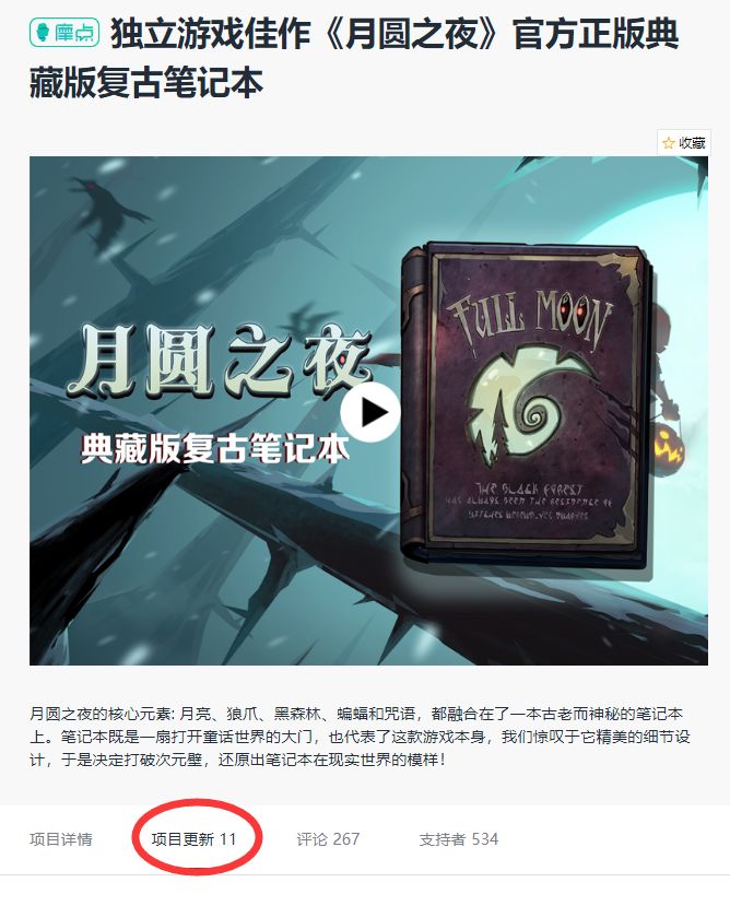 点击下方链接---注册摩点账户---搜索月圆之夜找到项目---点击项目更新