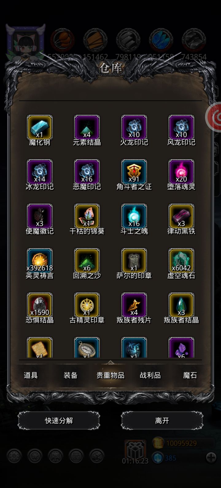 刚刚做了星百臂巨人去刷英灵。