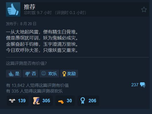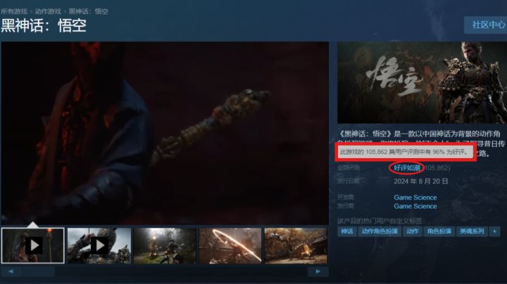 !下面我们来看看那些好评怎么说的。《黑神话:悟空》10万+评价,获得好评如潮