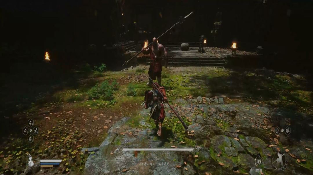 也需要注意黑风大王的人形突进招式,常常在猴子喝药的时候使用,建议在耗掉黑风大王大半管血后再使用变形技能,通过狼形态收尾。