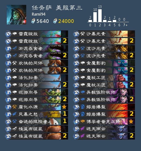 构筑上来看,任务萨其实和碎片瞎类似,都是伤害+周旋牌。但与碎片瞎相比,任务萨的直伤是真的少,对面稍微奶一奶就打不动了,尤其是不带甩笔侏儒的版本;而由于周旋组件基于跟班体系,任务萨在对上节奏卡组时的表现比碎片瞎稍微强一点,不过也就一点点而已。总的来说,如果你不是“信仰萨满”或者特别喜欢随机效果带来的乐趣,我会更推荐玩碎片瞎。