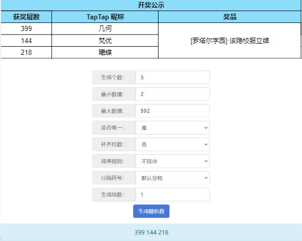 根据开奖结果显示,恭喜以下幸运的玩家们获得奖品: