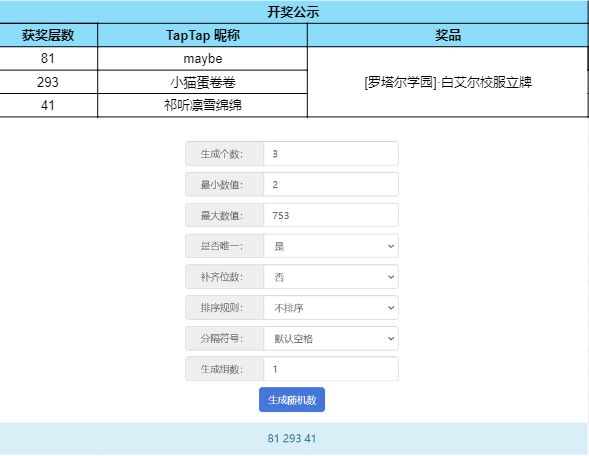 根据开奖结果显示,恭喜以下幸运的玩家们获得奖品: