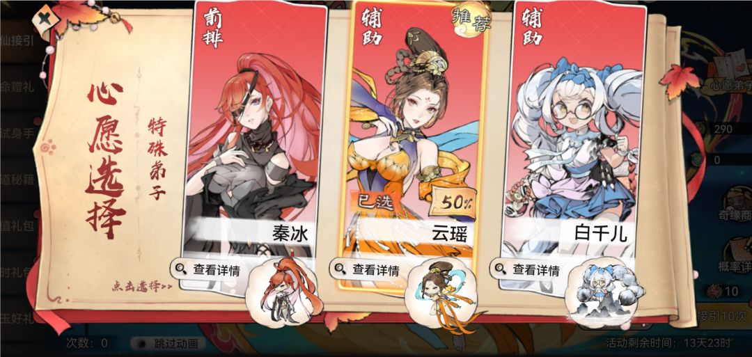 一期卡池为14天,在此期间我们可以免费通过限时礼包的每日登录免费获得14抽也就是14个寻仙令
