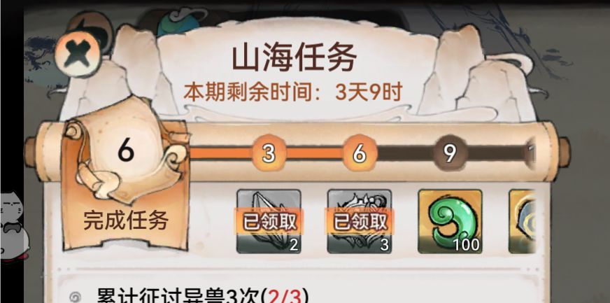 在达到一定天数开启山海世界每周打满6个任务可获得三个寻仙令