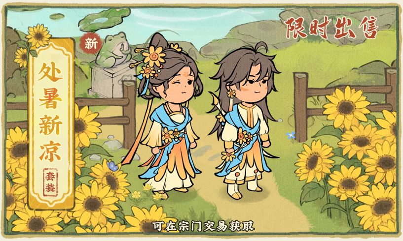 8月22日09:30-9月6日23:59处暑限时套装,可在宗门交易中使用180朱雀玉兑换。