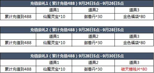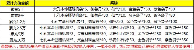 【活动简介】活动期间累计充值达到指定金额即可领取惊喜礼包!