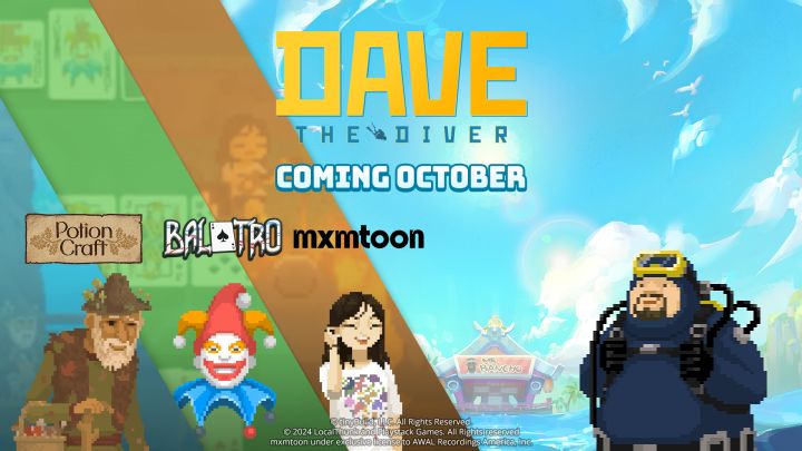 在此次联名合作中,融合了扑克与肉鸽元素的卡牌构建游戏《Balatro》和炼金术师模拟游戏《Potion Craft》将作为全新内容加入《戴夫潜水员》游戏。此外,与美国奥克兰的创作型歌手兼YouTuber Mxmtoon的合作也将在游戏内展开,她将作为NPC角色登场。