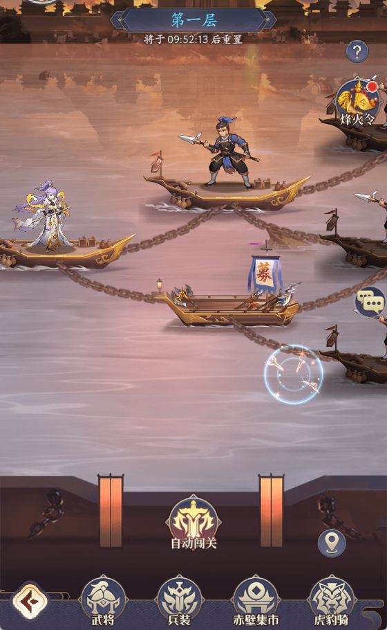 铁索连环玩法开启时间为0点,每48小时重置1次,重置后所有战船将重新生成,兵装全部增益清除。