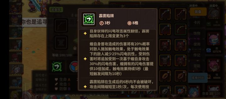 (偷的图片以及电弓词条镇楼)经过大佬测试 新电卡的击穿的触发并不需要卡片携带者本身触发暴击 当然为了保证击穿爆炸的伤害建议卡片携带者还是堆一堆暴击 那么 新电卡的工具人立刻确定了 电弓蝮 自带电伤翻倍和大量陷阱触发暴击 自己普攻也概率减电抗 最合适的宿主没有之一 配合卡片电伤额外获得60% 一点电伤等于2.6电伤 再加上一些元素套3精英伤饰品之类的 《浮石之旅偶遇电爆发射器 超级数值强如怪物 拼尽全力无法取胜》