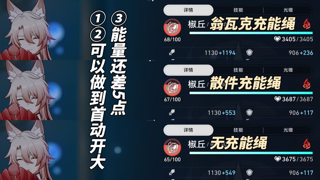以上就是本期椒丘培养攻略以及个人看法,希望可以帮助到你。由于角色刚上正式服,且大家队伍测试多以黄泉为主,在卡池期间说不定会有其他特别且实用的科研出现,届时有精彩搭配再为大家推荐~