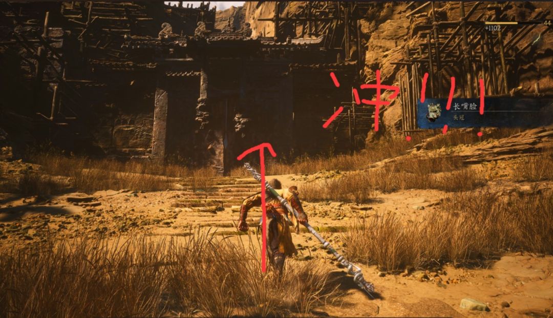 击败它后出门右转,你会在悬崖上看见一个BOSS,走过去和它对话