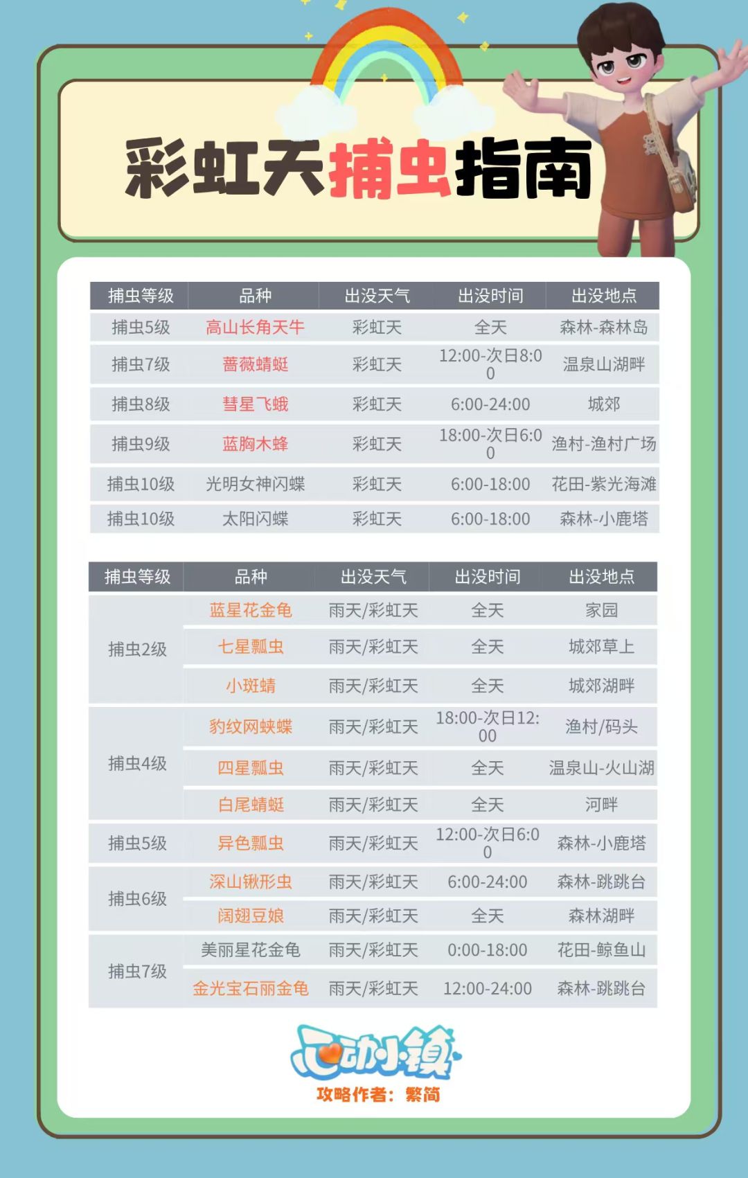 心动小镇最全彩虹天攻略及钓鱼观鸟捕虫图鉴