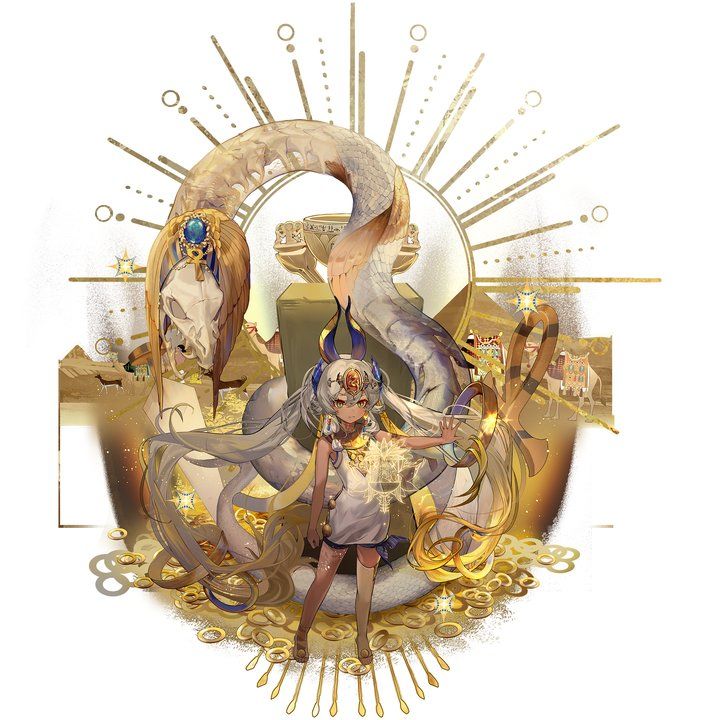 基于以上考虑,愿望杯的器者基础设定为自称底比斯统治者的骄傲少女,外貌的年龄感觉偏向9岁即位的少年图坦卡蒙,但具备了负责、务实的管理者品质,且在致力于重现失落文明光辉的方塔联合会担任重要职务。