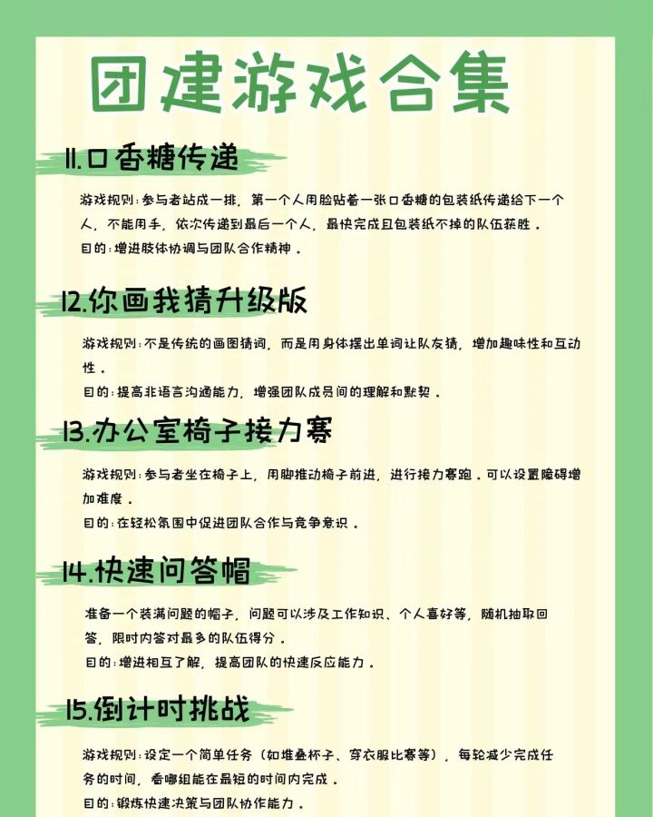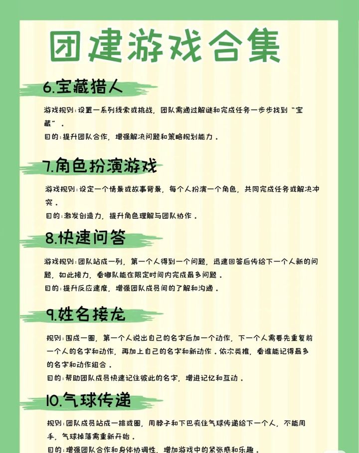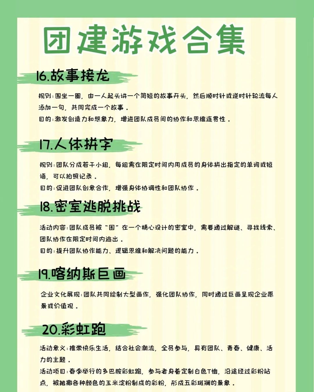 这些游戏不仅能够活跃气氛,还能在轻松愉快的环境中促进团队成员间的相互了解、信任与合作
