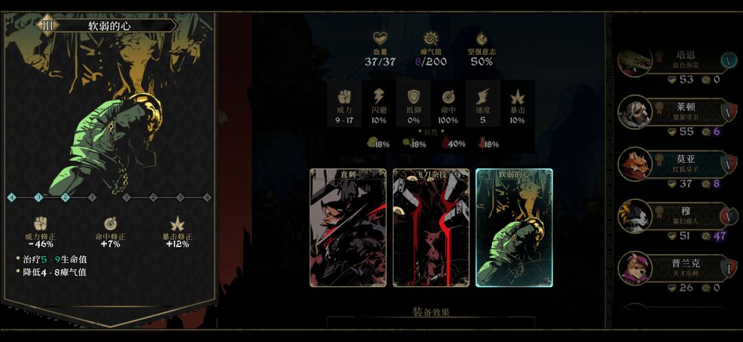 位置建议站在二号位,前期装备以暴击,速度和流血减抗为主,后期装备推荐