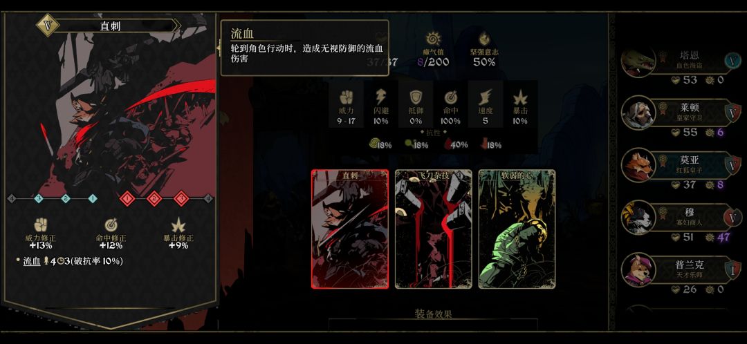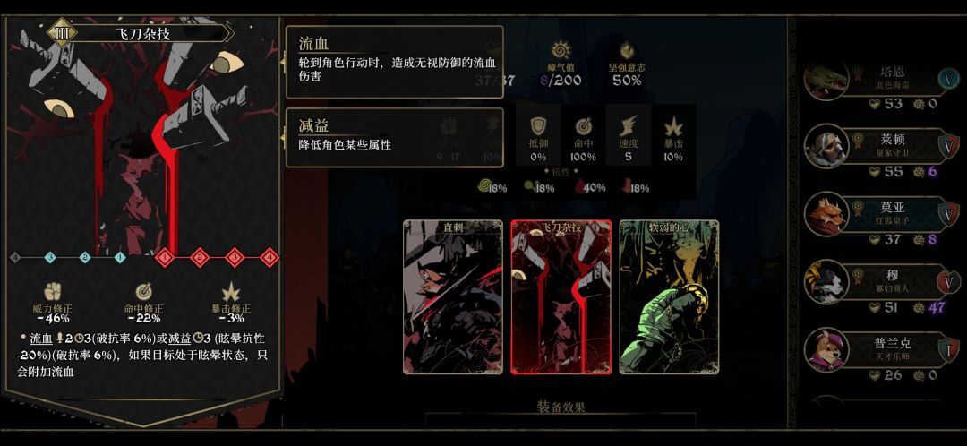红狐皇子向所有敌方扔出飞刀,有概率造成流血