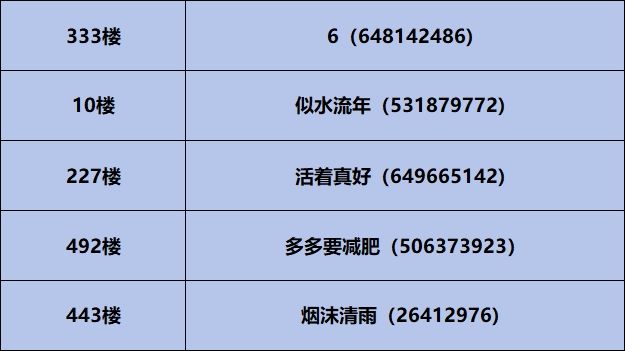 注:部分中奖的楼层因未满足活动参与要求,中奖资格将顺延至一下层满足活动要求的楼层。