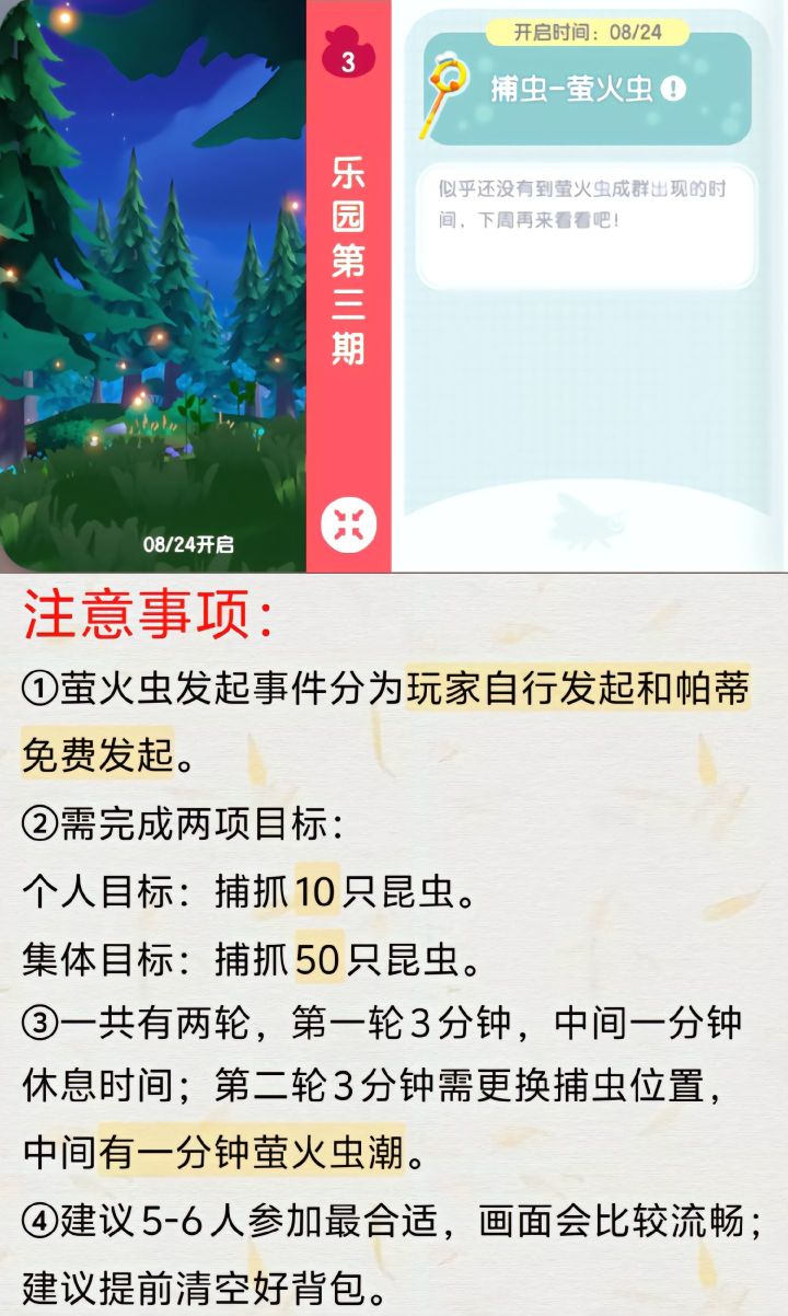 沙滩乐园季第三期捕虫--萤火虫,注意事项