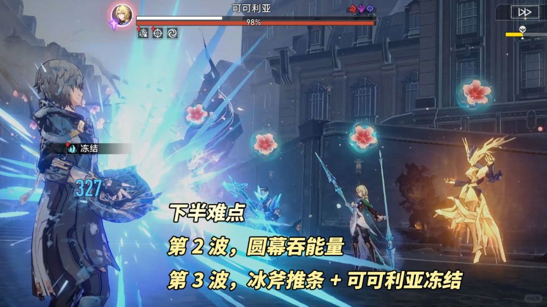 上半尽可能多拿高分,为下半留下更多的容错空间,毕竟第3波冰斧实在是太多了,配合上可可利亚冻结,初见很难拿下高分,除非你愿意反复去琢磨凹【爆裂】清怪。