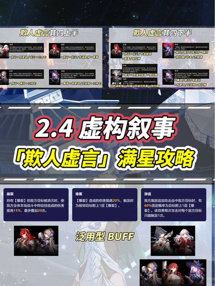 以上就是本期「2.4虚构叙事·欺人虚言」攻略,希望可以帮助到你,若你有其他不错的满星阵容,也可在评论区留言,为更多开拓者提供可抄的满星方案~#星铁明霄竞武试锋芒打卡 #崩坏星穹铁道