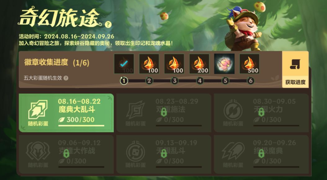 截止至9月26日,召唤师完成任务积攒能量,即可助力徽章收集进度,领取出生印记-新枝桃彩和龙魂水晶*2800奖励!
