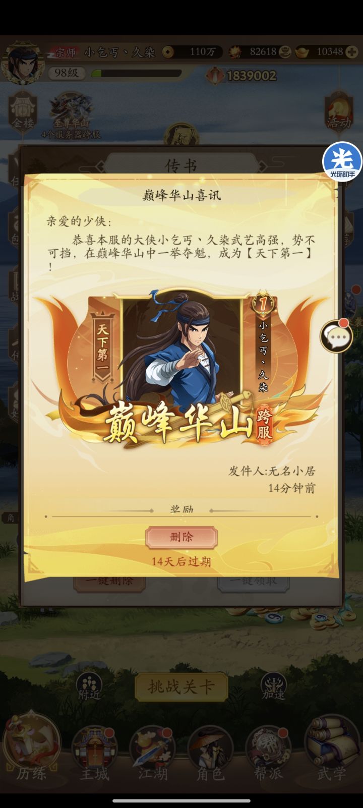 最近在新区玩了个阳奇,第一次玩这个游戏,目前到丐帮结束,区内经常爆冷登顶,今天跨区37倍又爆冷榜一登顶,分享一下阵容。另外新手一定要稳定运营,不要上头抽卡,所有资源稳扎稳打打好基础,才有爆冷的可能。