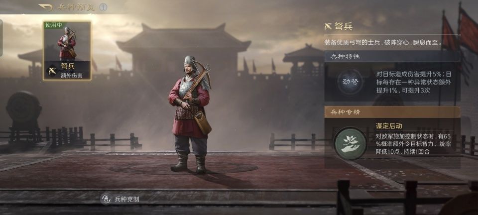 由于这支队伍可以施加的异常状态很多,故而诸葛亮的弩兵同时点亮了劲弩和谋定后动。这样既能吃满异常状态的伤害提额,还能削弱对手的统率和智力,以进一步降低他们的防御。