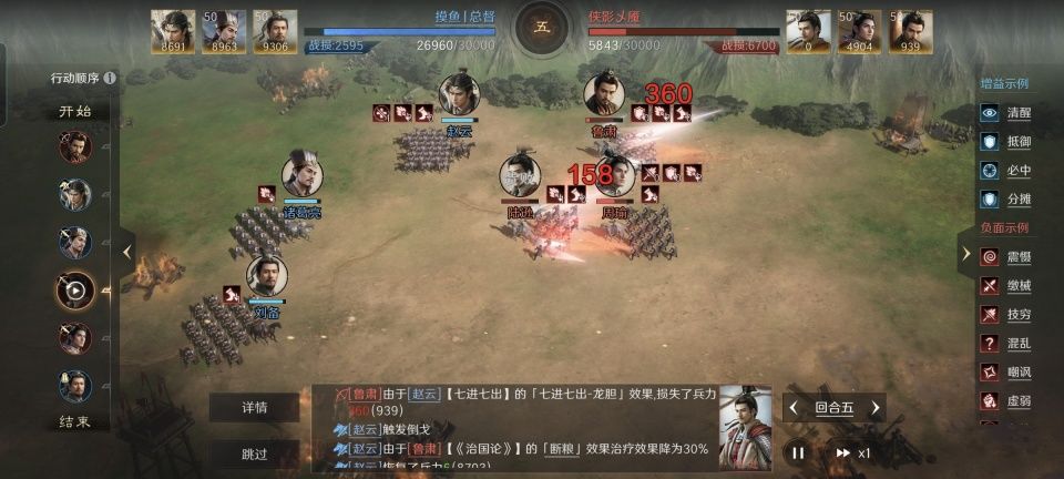 摸鱼丨总督在本场战斗摆出鱼鳞阵,持有七进七出战法的赵云当仁不让站前排。第二和第三战法,分别习得了威名显赫和水淹七军,有如此高的规避概率撑腰,赵云的倒戈还真够养活他自己了。