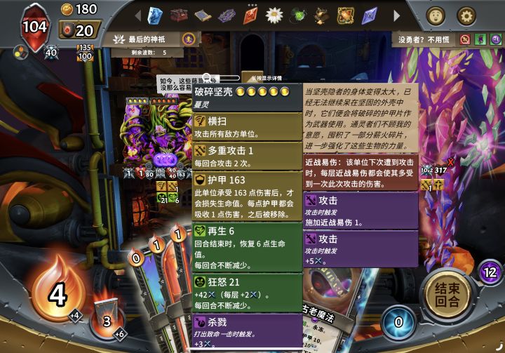 这把全程没拿到什么好牌,副觉者种族还选成第一个了,狂怒护甲流核心都没拿到,但就是全程靠着大哥自身强度过了,纯粹就大哥自己给自己叠攻击