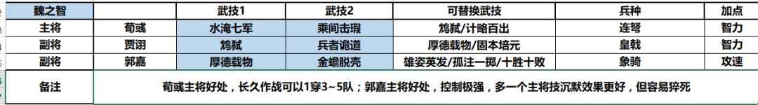 ③贾诩副将,贾诩作为魏智队伍里智力成长最高的,自然适合充当输出的角色。