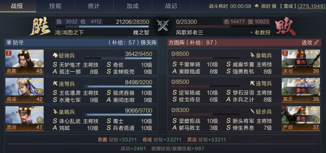②郭嘉主将,郭嘉如果为主将相当于自身有3个主动技能,配合自己的奇佐,往往可以把对面沉默到死。