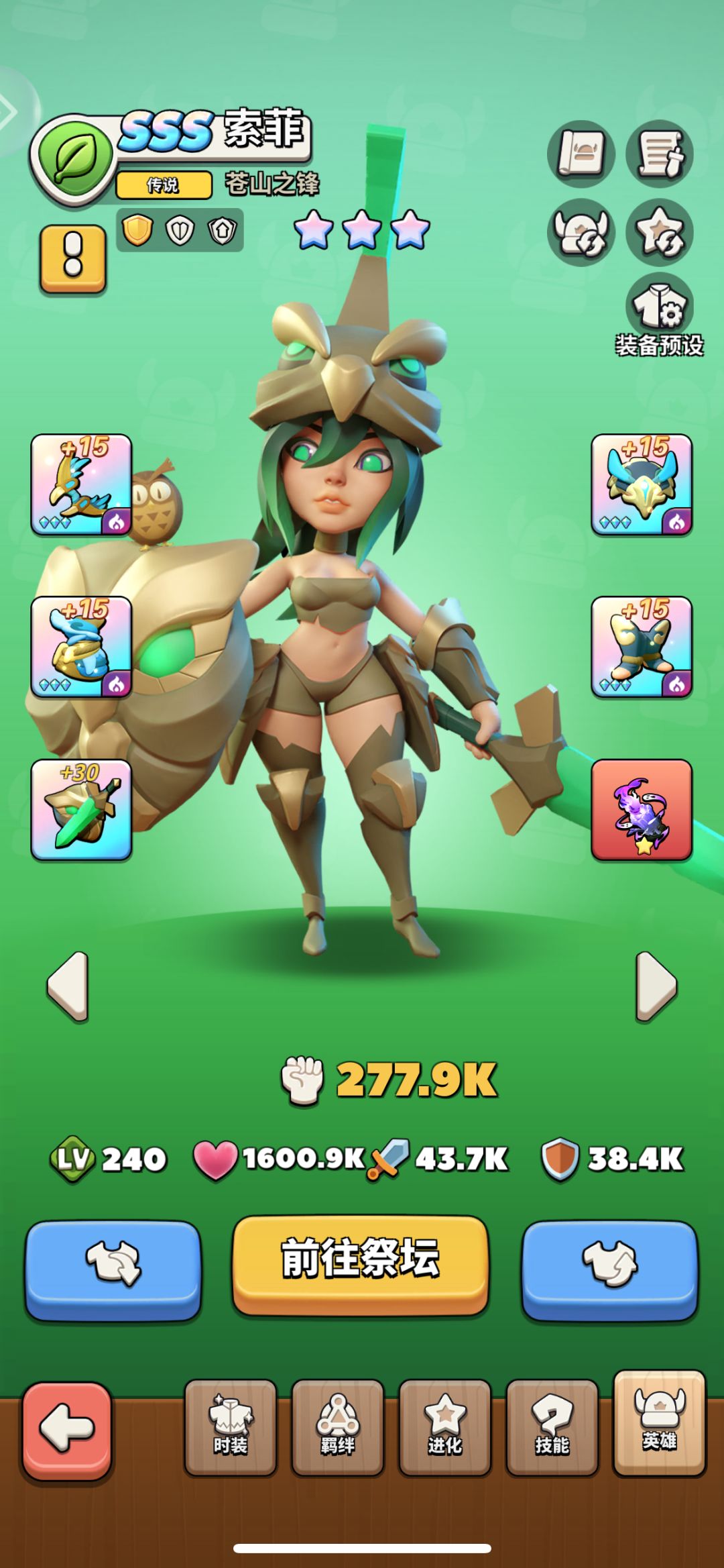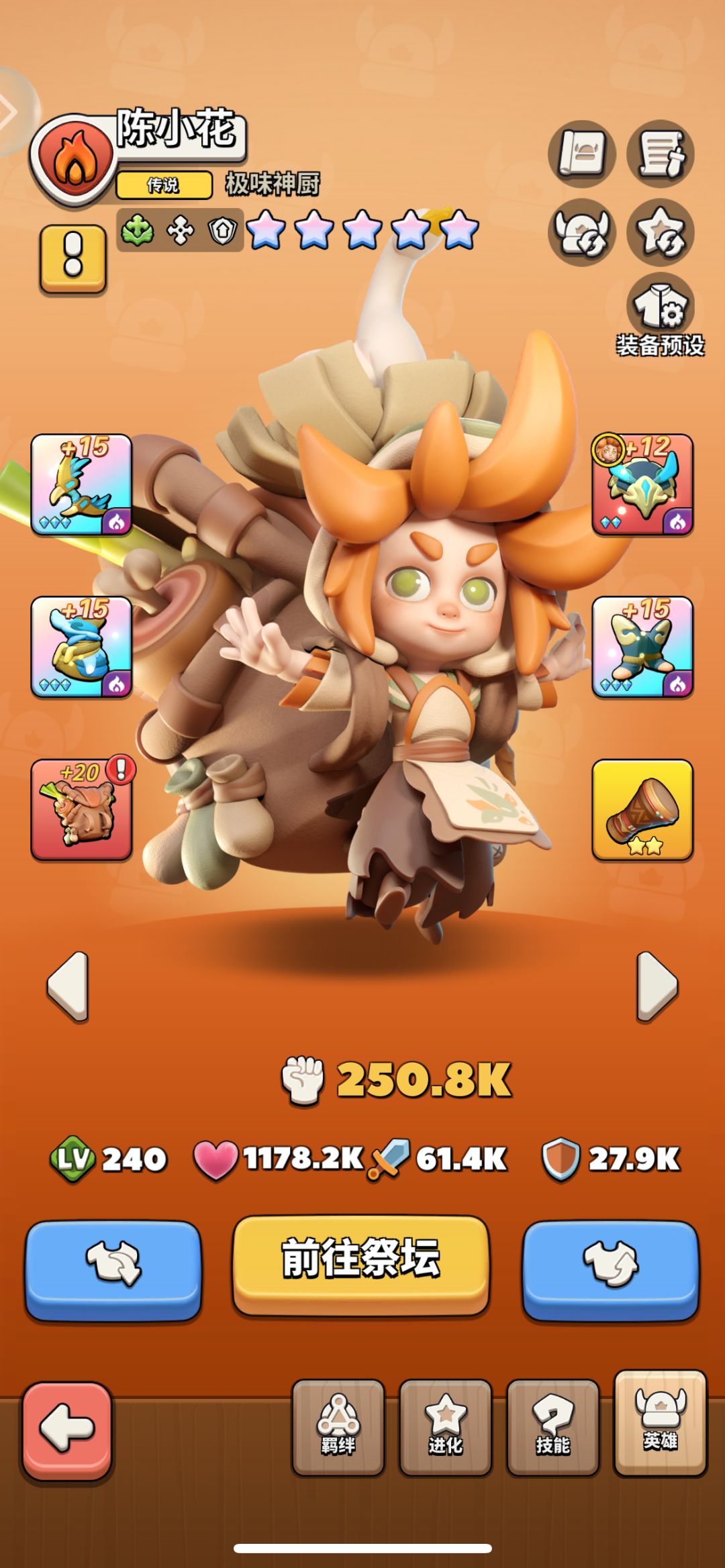 该游戏装备为随机获取,比点设计比较良心,氪金玩家与平民完全一样,就是看脸!你说嗨不嗨……相信自己的运气即可。推荐蛇女激流、暗影套,主攻速副攻击。吕布预兆、荆棘套,主生命、副攻击。猴子可散件搭配,攻击高即可。其余人员一律暗影套,属性无所谓,主生命最好。