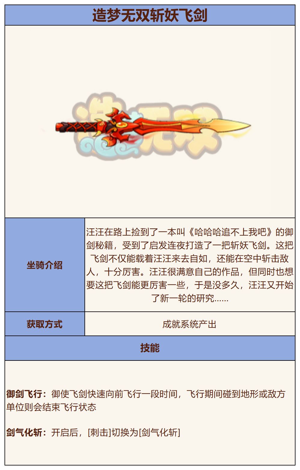 【坐骑攻略】造梦无双斩妖飞剑珍骑技能表