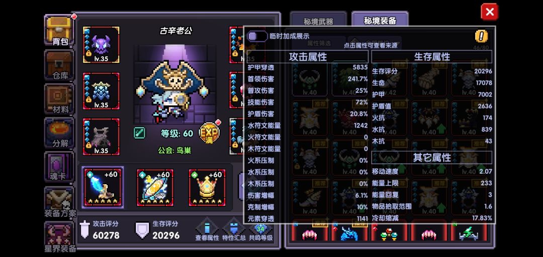 玩了好多年了,都还没有突破2wy,搞不懂那些几个月就有好几wy的(武器词条是三护穿两暴伤两暴击攻强一首领全黄)(魂卡词条是一水攻一元穿四百分攻两暴伤一生命)(魔界装备很乱一元穿一护穿一爆伤剩下全是没啥用的)