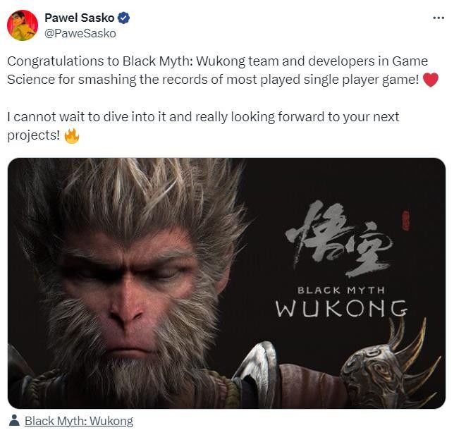 同为亚洲游戏创作者,祝贺游戏科学发售《黑神话:悟空》!