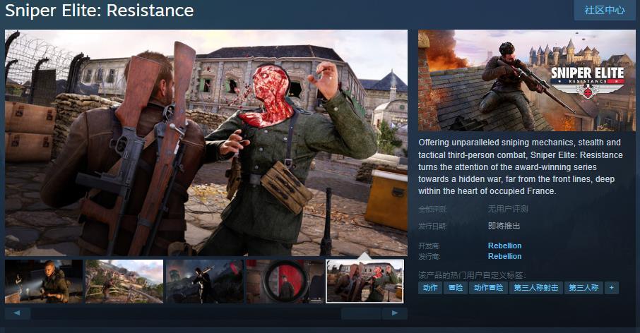 射击游戏《狙击精英:抵抗》Steam页面开放 明年发售
