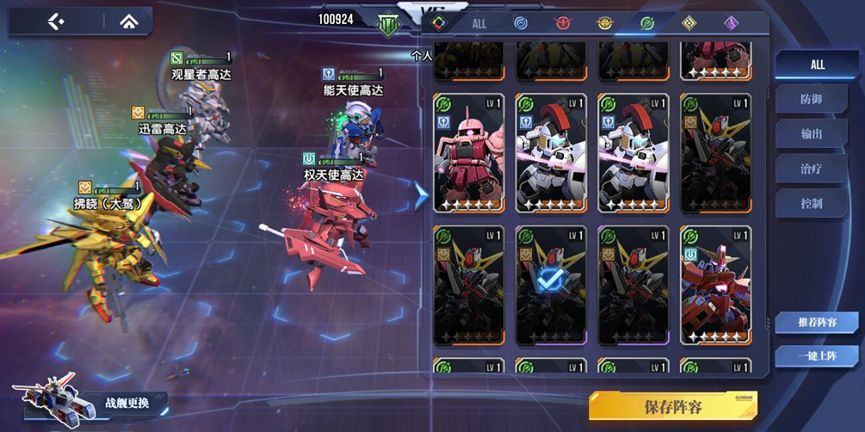 阵容机体:迅雷高达、拂晓(大鹫)、能天使高达、观星者高达、权天使高达
