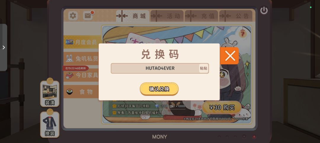 (HUTAO4EVER,这是一个兑换码!可以领取100钻石和500钱,在设置里兑换码兑换谢谢!)