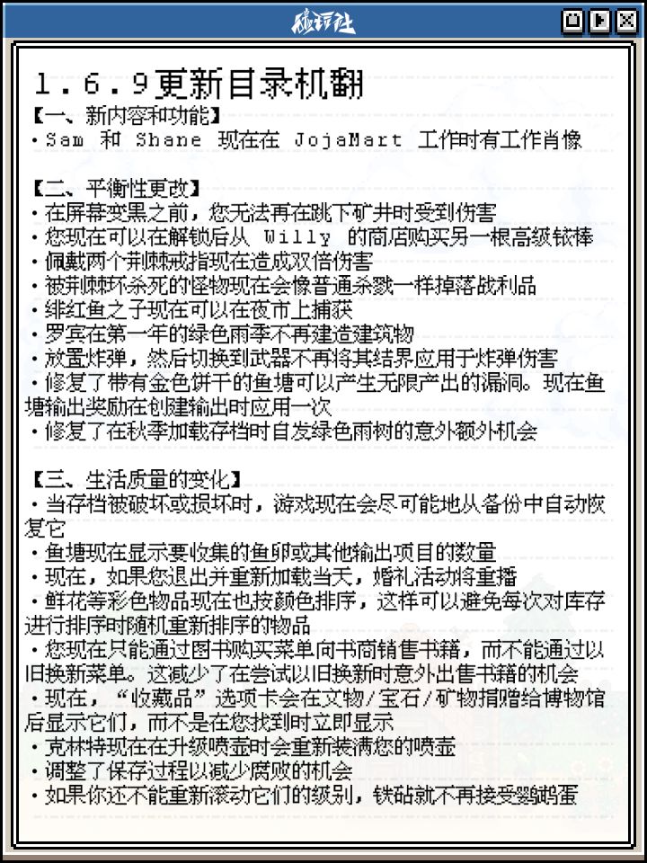 🔥超全!星露谷1.6.9新版本更新目录一览!