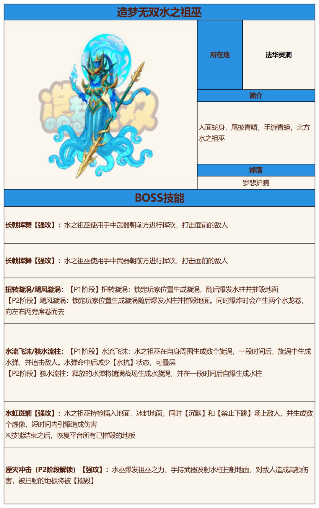 【主线BOSS攻略】造梦无双水之祖巫技能表