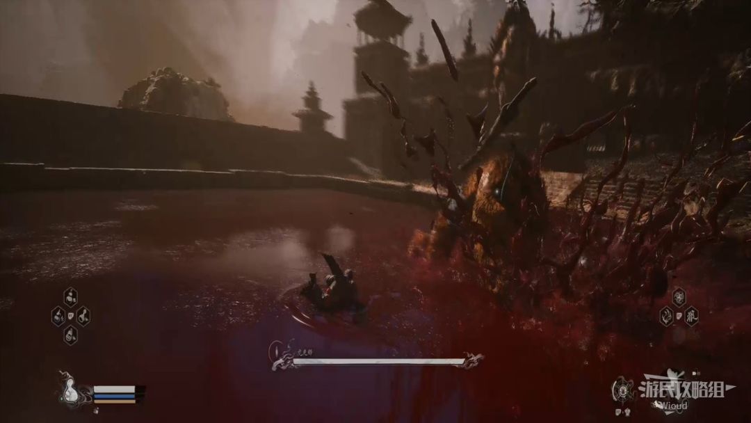 当看到虎先锋手握后剑摆起架势时就要做好躲避斩击的准备了,斩击的形式是以极快的速度挥剑砍向玩家,每次即将冲过来时虎先锋都会喊一声霸,听见霸后默数两秒直接翻滚即可躲避。