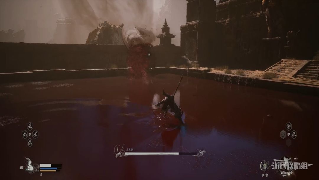 虎先锋每输出完一套军体拳,也就是打完一套连招都会有一定时间的后摇,我们通过这个时间快速用普攻积攒棍势,等待时机使用重击消耗血量,重击也可以打断虎先锋的连招。